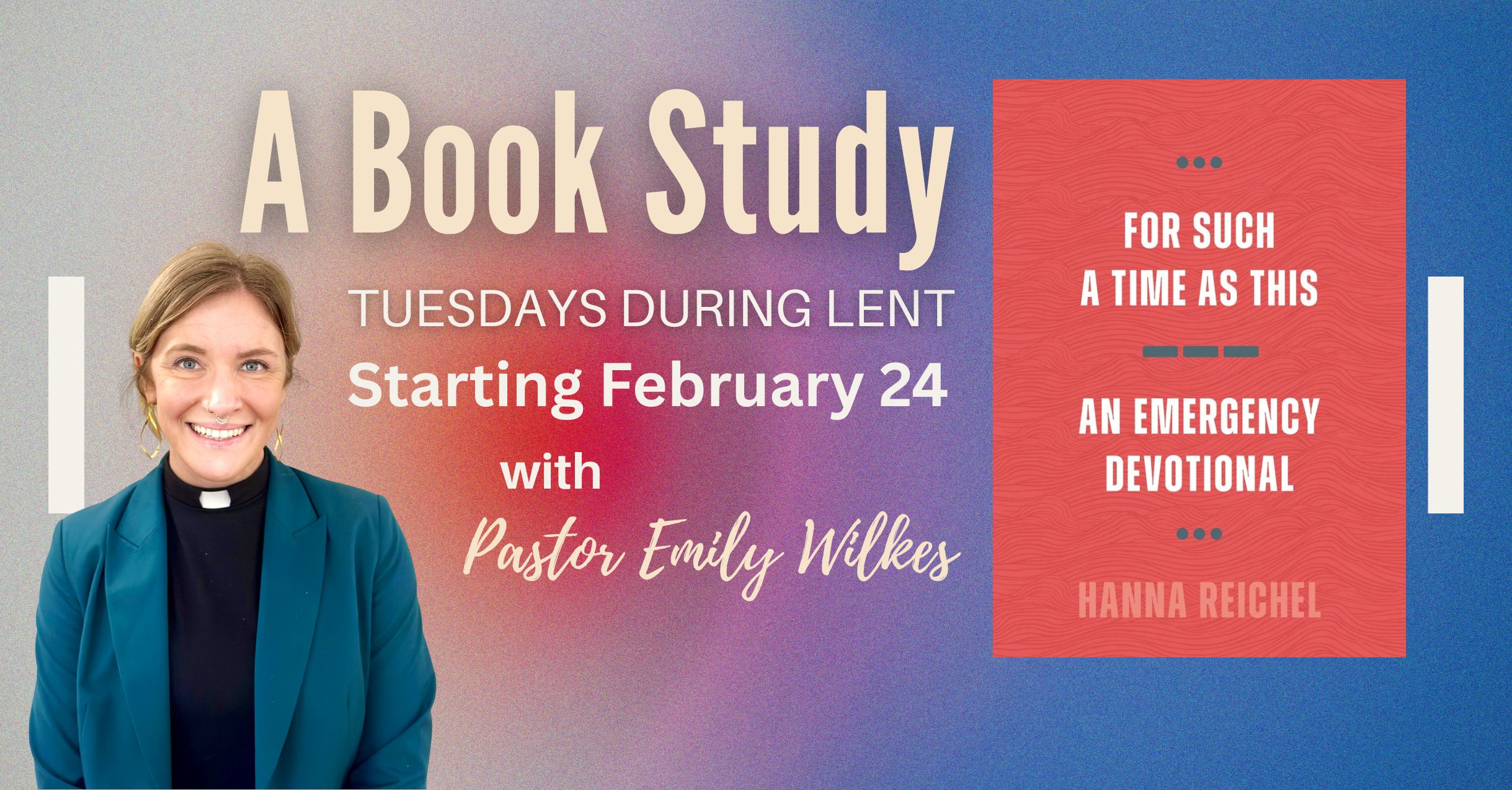 Join us for a six-week study of For Such a Time As This: An Emergency Devotional by theologian Hanna Reichel. Offering brief, incisive reflections that connect Scripture, public life, and the demands of faithful witness, it is honest, challenging, and deeply grounded in hope. Whether you're feeling weary, activated, uncertain, or searching for your path, you are warmly invited to participate (you don't have to do any reading beforehand). Come ready to listen, reflect, and discern together what faithfulness looks like for such a time as this.